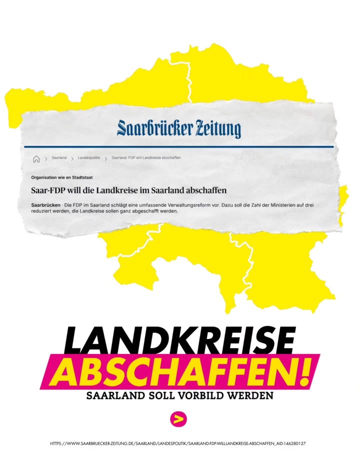 Landkreise abschaffen? - Ja! 🗽 Brauchen wir im Saarland wirklich noch Verwaltungsebenen aus dem 19. Jahrhundert? Es ist Zeit, das Saarland wie einen modernen Stadtstaat zu organisieren. Warum das Ganze? ✅ Schneller: Weniger Behörden-Ping-Pong. ✅ Einfacher: Ein Ansprechpartner statt Zuständigkeits-Wirrwarr. ✅ Digitaler: Schlanke Prozesse statt Aktenberge. Wir wollen die Landkreise schrittweise abschaffen und die Aufgaben direkt in eine effiziente Landesverwaltung integrieren. Für dich bedeutet das: Bürgernahe Servicecenter vor Ort und ein Staat, der endlich wieder liefert. 📈 Ein Staat, der funktioniert. Ein Staat, dem man vertraut. #FDPSaar #Saarland #Innovation #Bürokratieabbau #FDP