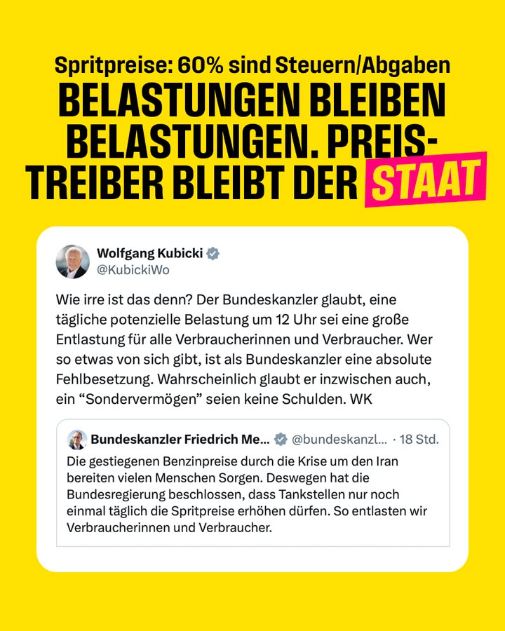 Wir setzen auf Gründer- und Unternehmergeist, anstatt auf Bürokratie und Bevormundung. Wir setzen auf Nachhaltigkeit durch Innovation, nicht durch Verbote. Wir wollen, dass Deutschland Weltspitze ist bei Bildung und Digitalisierung, nicht bei Steuer- und Abgabenlast. Wir setzen auf einen handlungsfähigen Staat. Nicht einen, der sich verzettelt. Wir wollen eine starke Wirtschaft für starke Arbeitsplätze und Wohlstand für alle.